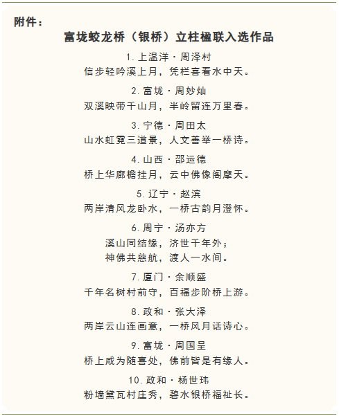 附件:富垅“蛟龙桥”立柱楹联入选作品