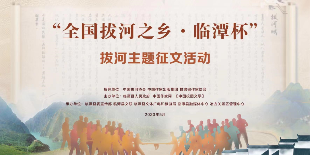 [color=rgba(0, 0, 0, 0.9)]“全国拔河之乡·临潭杯”拔河主题征文活动启事 [color=rgba(0, 0, 0, 0.9)] [color=rgba(0, 0, 0, 0.9)]为深入贯彻落实党的二十大精神,弘扬全社会团结奋斗的精神标识,挖掘、刻画、弘扬、传播拔河运动承载的文化内涵和精神力量,助力全国拔河之乡·临潭县国家级非遗项目“万人扯绳(拔河)”文化品牌传播,增强中华优秀传统文化自信,经临潭县人民政府和中央定点帮扶单位中国作家协会商议,决定以文学的方式记述展示拔河这一群众体育、民俗活动的独特魅力,以汇集到的优秀文学作品丰富全国拔河文化发展成果,为脱贫县新时代经济社会高质量发展注入精神力量。值此今年7月2023“冶力关杯”中国拔河公开赛暨第七届甘肃·临潭拔河节(拟定名)即将举办之机,为配合赛事品牌宣传,进一步挖掘弘扬“一根绳,一条心,一股劲”的拔河精神,在中国拔河协会、中国作家出版集团、甘肃省作家协会等单位指导协作下,特面向全国举办该主题征文活动。 [color=rgba(0, 0, 0, 0.9)]一、 征文机构 [color=rgba(0, 0, 0, 0.9)]指导单位:中国拔河协会 中国作家出版集团 甘肃省作家协会 [color=rgba(0, 0, 0, 0.9)]主办单位:临潭县人民政府 中国作家网 《中国校园文学》 [color=rgba(0, 0, 0, 0.9)]承办单位:临潭县委宣传部 临潭县文联 临潭县文体广电和旅游局 临潭县融媒体中心 冶力关景区管理中心 [color=rgba(0, 0, 0, 0.9)]二、 征文对象 [color=rgba(0, 0, 0, 0.9)]全国各地拔河赛事从业人员,各单位、学校爱好拔河活动的职工、师生,热爱崇尚关注拔河文化的文学爱好者。临潭县本土“万人扯绳(拔河)”活动、“冶力关杯”拔河公开赛亲历者等。 [color=rgba(0, 0, 0, 0.9)]三、 征文主题 [color=rgba(0, 0, 0, 0.9)]阐释拔河活动体现的意义和精神,呈现祖国各地丰富多彩的拔河文化,展示中国拔河运动之美,普及拔河运动知识技巧,记述你与拔河的故事。可体味历史文化,描绘典型人物,也可重拾珍贵回忆,讲述动人故事。 [color=rgba(0, 0, 0, 0.9)]此外,为集中总结和展示活动主办单位、2008年首个全国拔河之乡·临潭县独特的国家级非遗项目“万人扯绳(拔河)”文化,总结传承过去历次“冶力关杯”拔河公开赛历程,特邀相关亲历者和关注临潭万人扯绳(拔河)文化的文学爱好者赐稿。 [color=rgba(0, 0, 0, 0.9)]相关背景材料请点击文末左下角“阅读原文”。 [color=rgba(0, 0, 0, 0.9)]四、 征文时间 [color=rgba(0, 0, 0, 0.9)]即日起至6月30日。 [color=rgba(0, 0, 0, 0.9)]五、稿件要求 [color=rgba(0, 0, 0, 0.9)]1、应征稿件体裁应为文学作品,以散文、随笔、杂文、诗歌等3000字以内(现代诗50行以内,古体诗词曲赋10组以内)短篇幅作品为主,内容健康,积极向上。 [color=rgba(0, 0, 0, 0.9)]2、应征稿件应为未在公开出版刊物上发表过的原创作品,严禁剽窃或抄袭,一经发现或举报属实,将被取消参与资格。 [color=rgba(0, 0, 0, 0.9)]3、本活动为公益帮扶项目,投稿作品不需要交纳任何费用,版权视为归活动所有,发表、出版将不再另行签约、付费。 [color=rgba(0, 0, 0, 0.9)]4、活动最终解释权归组委会所有。 [color=rgba(0, 0, 0, 0.9)]六、奖励方式 [color=rgba(0, 0, 0, 0.9)]1、评选“拔河主题征文十佳作品”。发放创作奖励金,其中5000元1人,2000元3人,500元6人(均为税前)。授予获奖证书。邀请部分获奖者到临潭县冶力关旅游区现场领奖,费用由组委会承担。期间可与著名作家、文学编辑、评委老师面对面交流,参与旅游采风、土特产体验,观摩2023“冶力关杯”中国拔河公开赛暨第七届甘肃·临潭拔河节(拟定名)。 [color=rgba(0, 0, 0, 0.9)]2、评选“拔河主题征文优秀作品”(含十佳作品)。在公开媒体公示获奖名单。在中国作家网“我与拔河的故事”专栏发表。校园师生作品择优在《中国校园文学》发表。亲历者有价值的纪实材料编入地方文化出版物。 [color=rgba(0, 0, 0, 0.9)]3、所有应征作品将有机会入选国内第一本专题展示地方拔河文化的图书《万人拔河在临潭》(拟定名,视稿件数量质量情况编辑出版)并获赠留念,敬请相关临潭“万人扯绳(拔河)”研究者、亲历者赐稿。 [color=rgba(0, 0, 0, 0.9)]七、评审颁奖方式 [color=rgba(0, 0, 0, 0.9)]由组委会组织相关专家进行初评、终评。拟定7月下旬在2023“冶力关杯”中国拔河公开赛暨第七届甘肃·临潭拔河节(拟定名)举办地、甘肃省甘南藏族自治州临潭县冶力关旅游区颁奖。 [color=rgba(0, 0, 0, 0.9)]八、投稿方式 [color=rgba(0, 0, 0, 0.9)]稿件正文、作者简介、通讯方式统一以word附件形式发送到电子邮箱:mqc0378@163.com,邮件主题应注明“拔河征文+作者姓名”,以防遗漏。 [color=rgba(0, 0, 0, 0.9)]