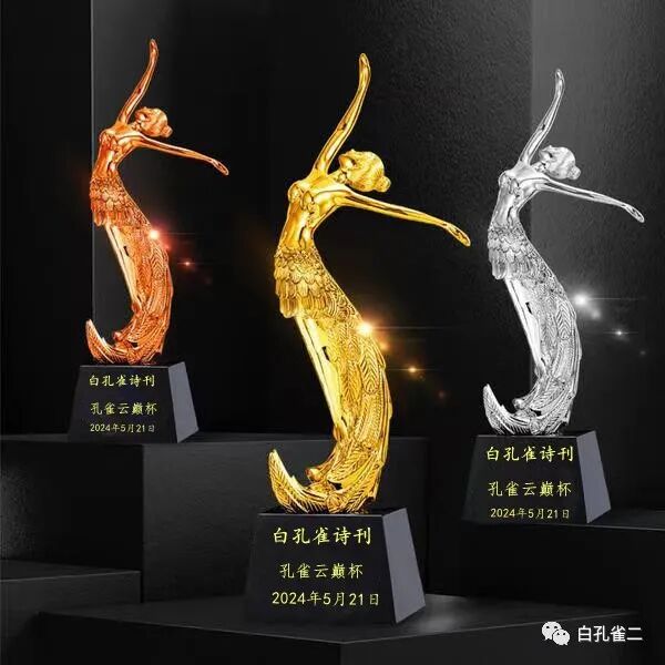 三等奖3名,每人奖励1000元,免费在《白孔雀诗选》10期【夏卷】刊发获奖作品,赠送样刊一本。