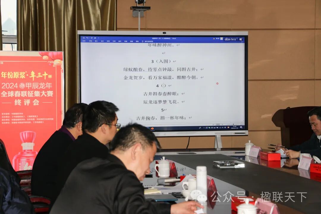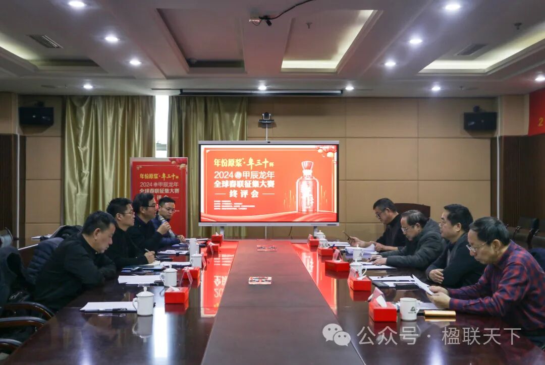 本报讯(记者 之一)1月10日下午,“年份原浆•年三十”杯2024甲辰龙年全球春联征集大赛终评会,在合肥举行。中国楹联学会会长兼秘书长李培隽,著名作家、古井集团副总裁杨小凡参加线上评选。安徽省楹联学会会长陈建国、秘书长史培刚,中国楹联学会名誉副会长卢晓,著名楹联家张家安,安徽省楹联学会副秘书长唐佳,中国楹联报常务副总编郏云海,安徽省楹联学会副秘书长周玉冰等参加了现场评审工作。古井集团品牌负责人胡侃等出席了当天的终评会议。