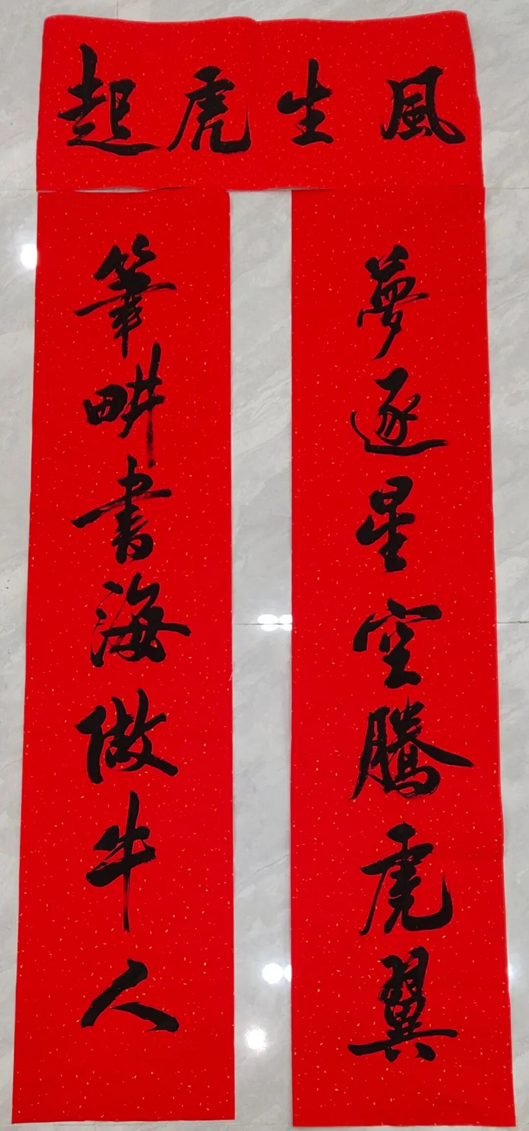 赵峰 泼墨千宣,搁笔不觉春已至; 寄怀一室,培英但愿梦高飞。 横批:如虎添翼