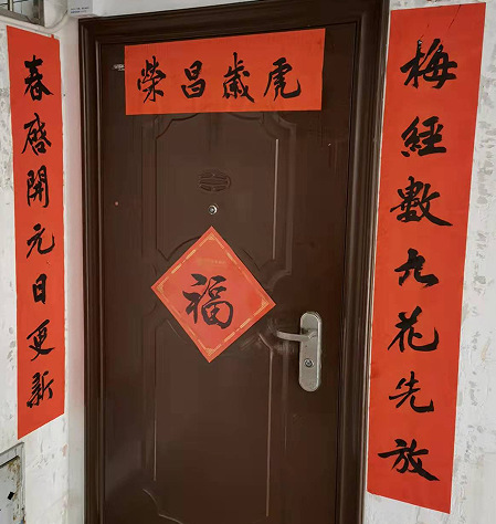 自家春联: 梅经数九花先放; 春启开元日更新。 横批:虎岁昌荣