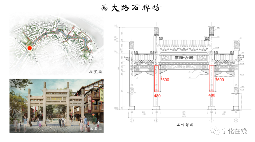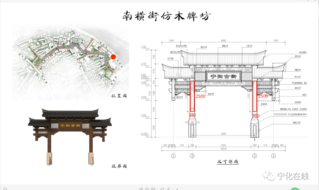 2. 宁阳古街:西大路、南横街2个入口牌坊前后两面各1副,共4副。(示意图附后)