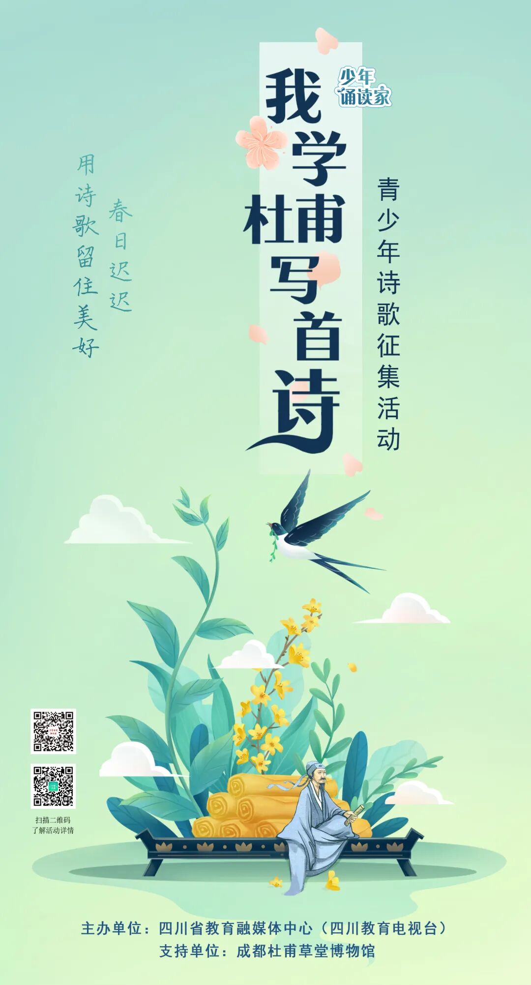 蓬勃的春日图景 而在孩子们的眼中 春天是什么样的呢? 没有一个冬天不可逾越 没有一个春天不会来临 在春意盎然之际 我们推出了 “我学杜甫写首诗”青少年诗歌征集活动